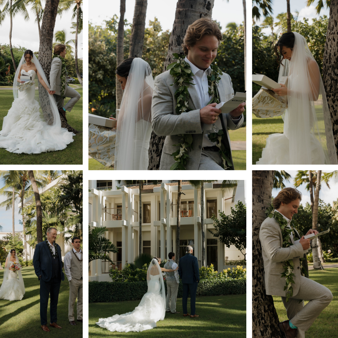 A first look with letters is the kind of soft, emotional moment that feels private even with palm trees watching. Bonus points for the veil drama and the “I’m not crying, you’re crying” energy.