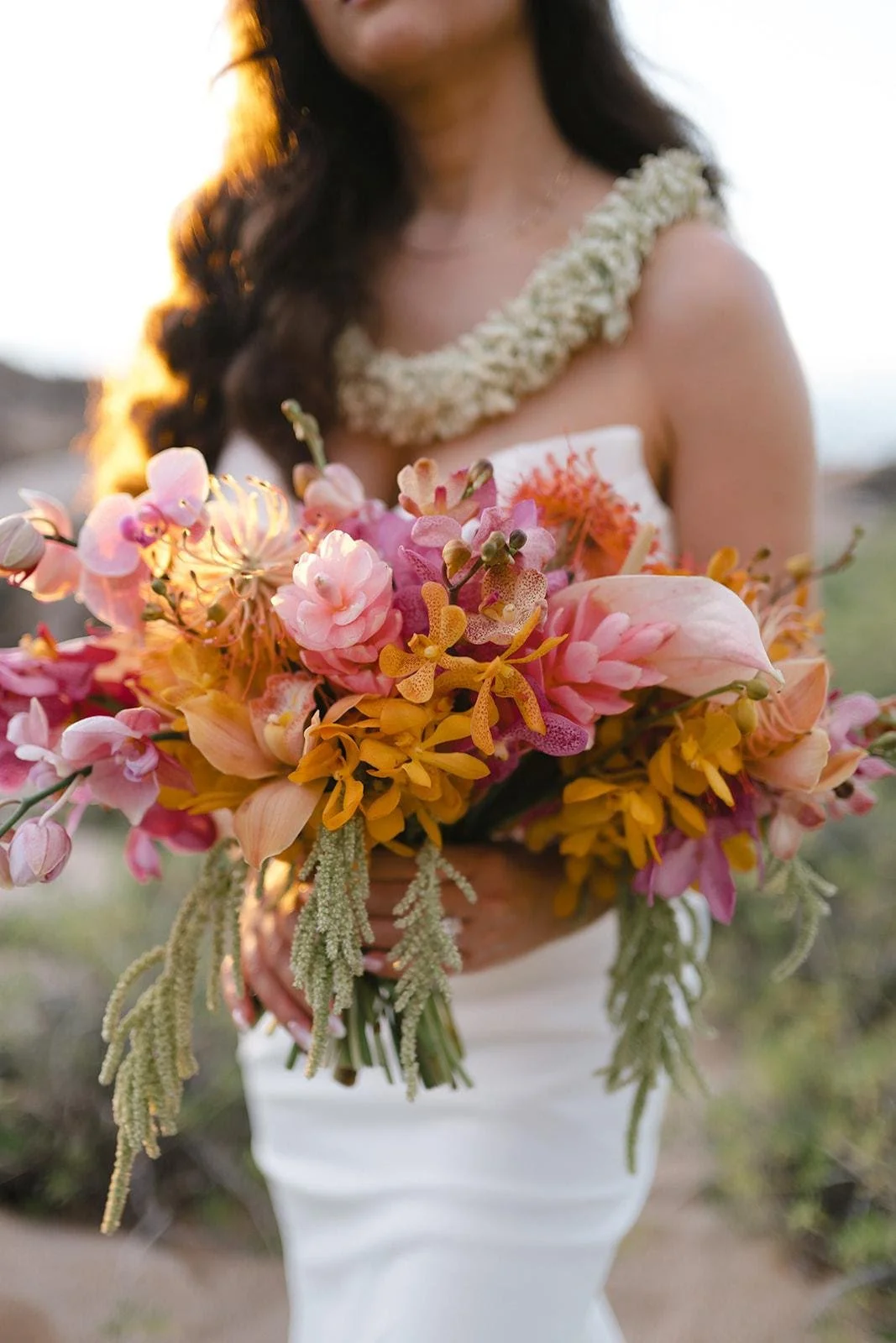 Choose a bouquet that tells your color story, fits your movement, and plays nicely with island light—then let the florals do the flirting. With these Hawaiʻi-tested combos, your flowers won’t just complete the look; they’ll steal a little spotlight in every frame. Happy Planning!
